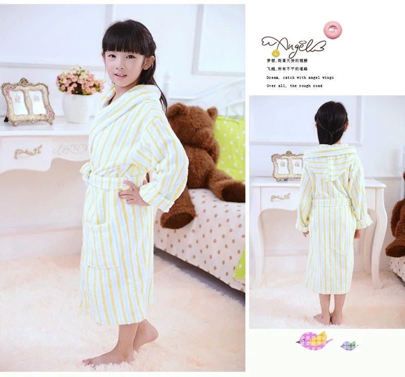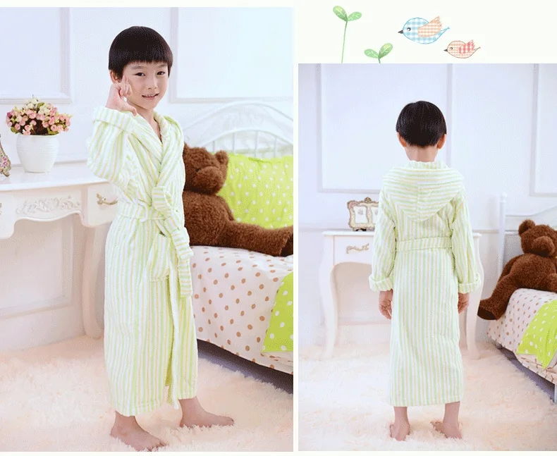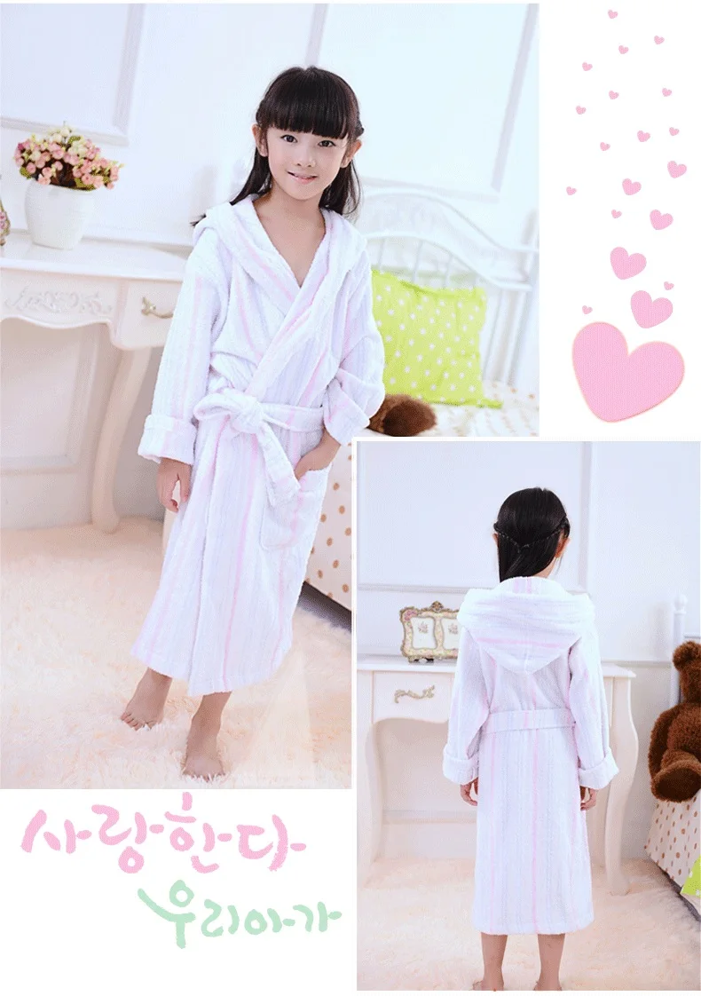 Детский банный халат в полоску; Махровый банный халат для девочек; Хлопковый банный халат для мальчиков; Детская Хлопковая одежда для сна; Банный Халат