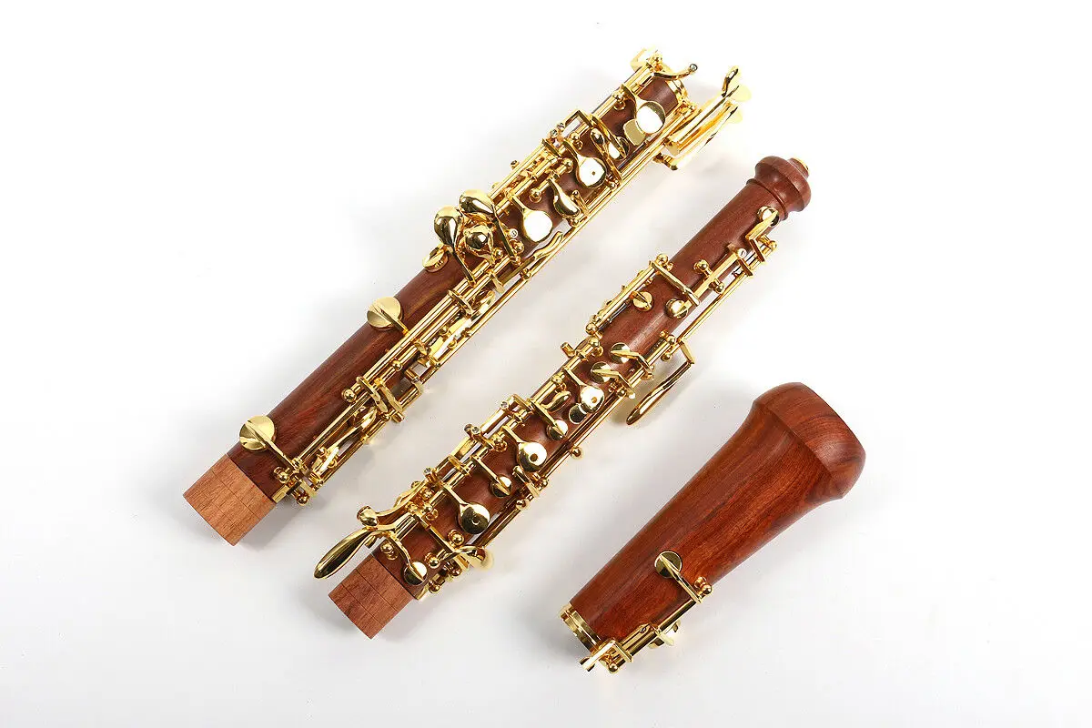 * Brand New , with High quality, * Keywork in golden Copper-nickel alloy Material * Resonance F * Left F key * Third octave key * Second octave key closes the first octave (semi-automatic system), If you need Fully automatic system, please contact me. thanks. * Nice And High quality trill keys * This oboe has been serviced * Play tested intonation adjustments * This oboe has very nice intonation. * The oboe is fit for the professional * It comes with oboe case and case cover. *redwood body.