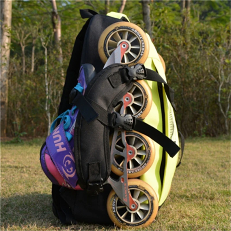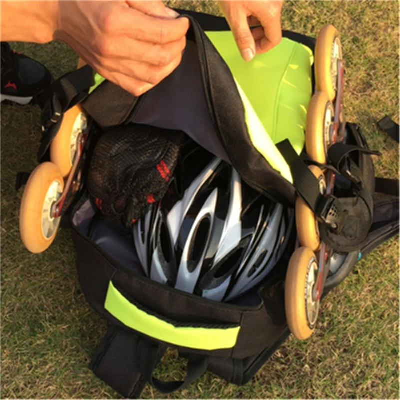 1. Плечевой рюкзак может держать 4x110мм/3x125мм встроенные скорости коньки обувь европейский размер 46 максимум; 2. Нейлоновый материал хорошего качества; 3. Размер 32 см * 15 см * 48 см;