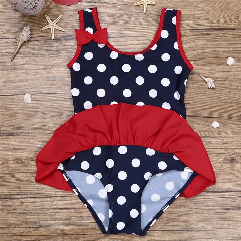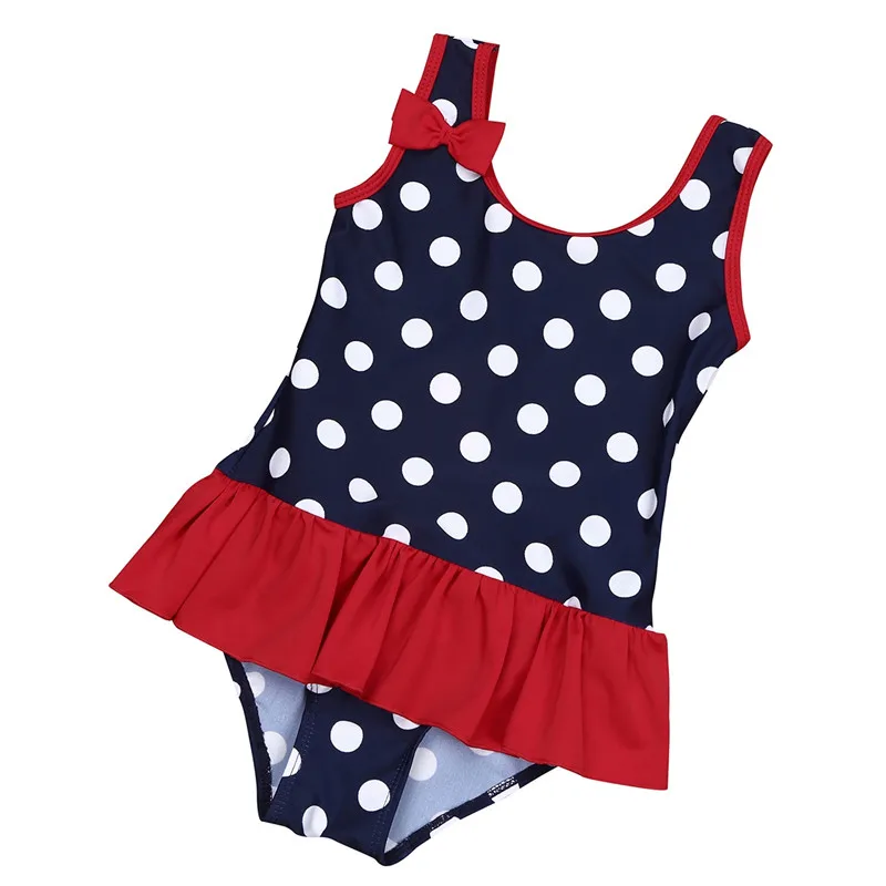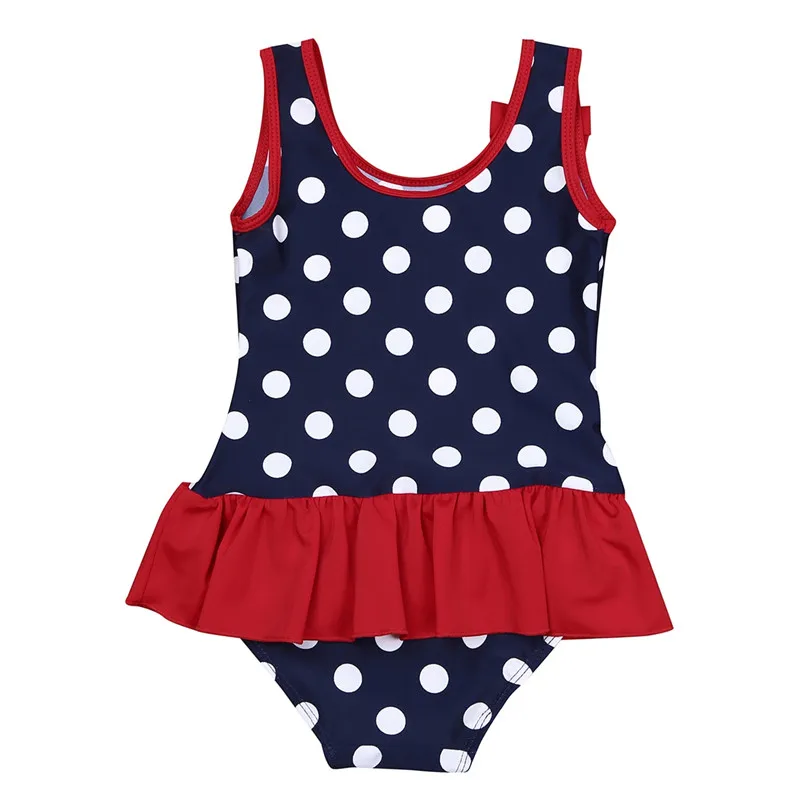 Детский цельный купальный костюм в горошек без рукавов с оборками для маленьких девочек, купальные костюмы Пляжная одежда для детей от 0 месяцев до 3 лет