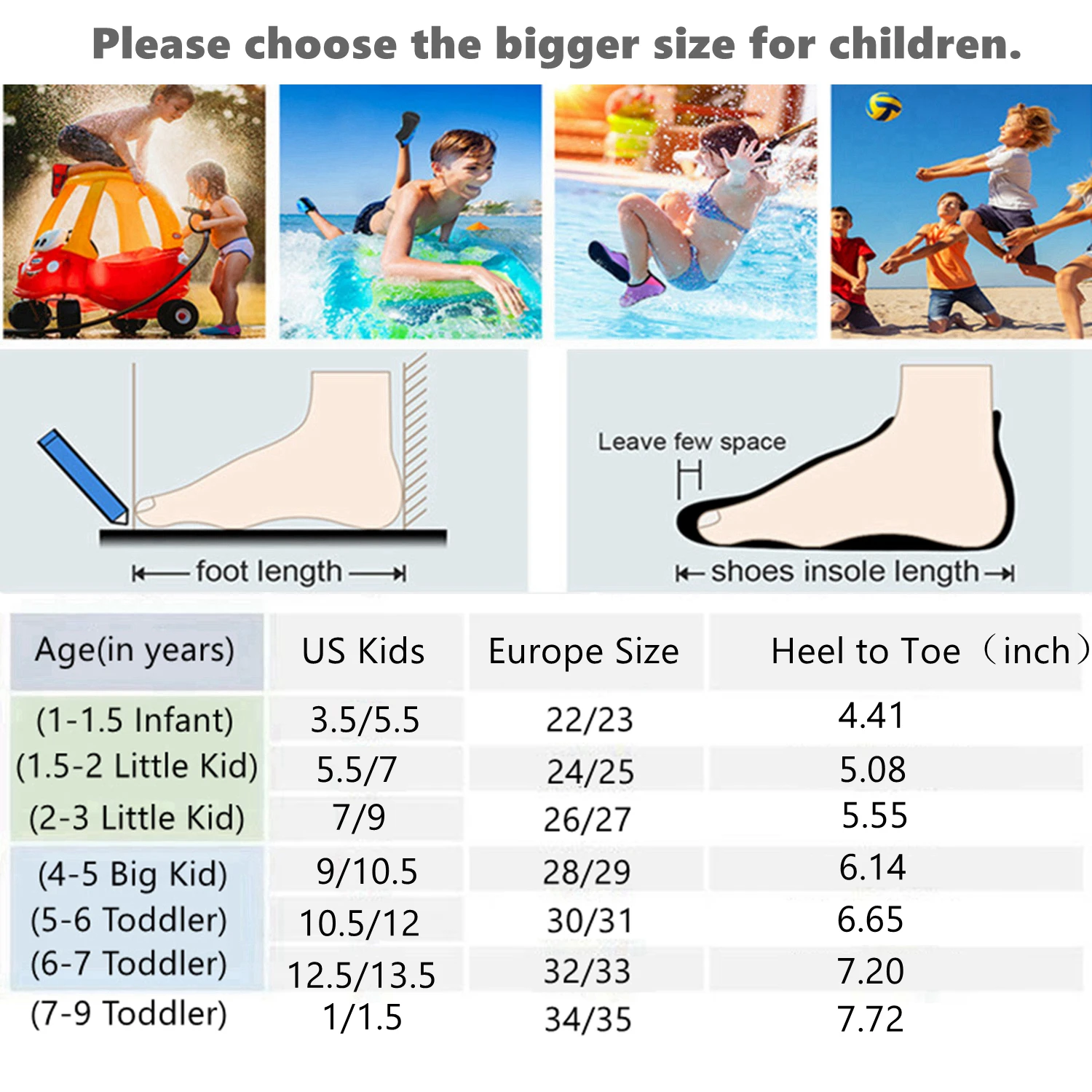 Пожалуйста, выберите больший размер для детей, детские ноги растут очень быстро, и вам нужно некоторое время, чтобы получить обувь