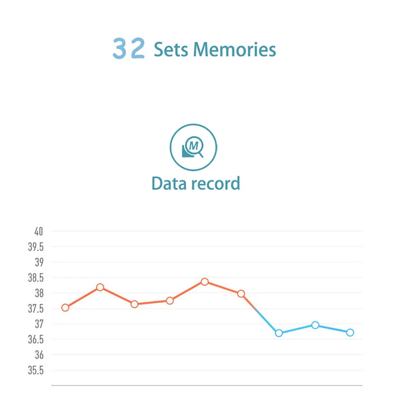 --AMS technology(Patented):automatic mode switch between forehead & ear mode --Magnetic probe cover makes more convenience for use --With super large screen display current and previous readings --Multi-functional ,can measure ear, forehead, room, milk, water and object temperature --Accurate: clinically accurate algorithm with 3 stage calibration --40 sets of memories, switching between mute and un-mute mode --Audio and visual fever warning --Switching between ℃ and ℉ --Auto shut-down and power-saving --LCD four color back-light temperature indication