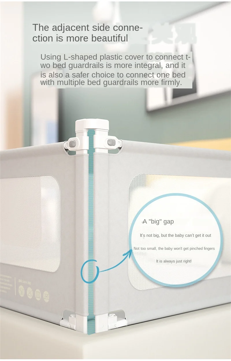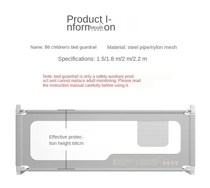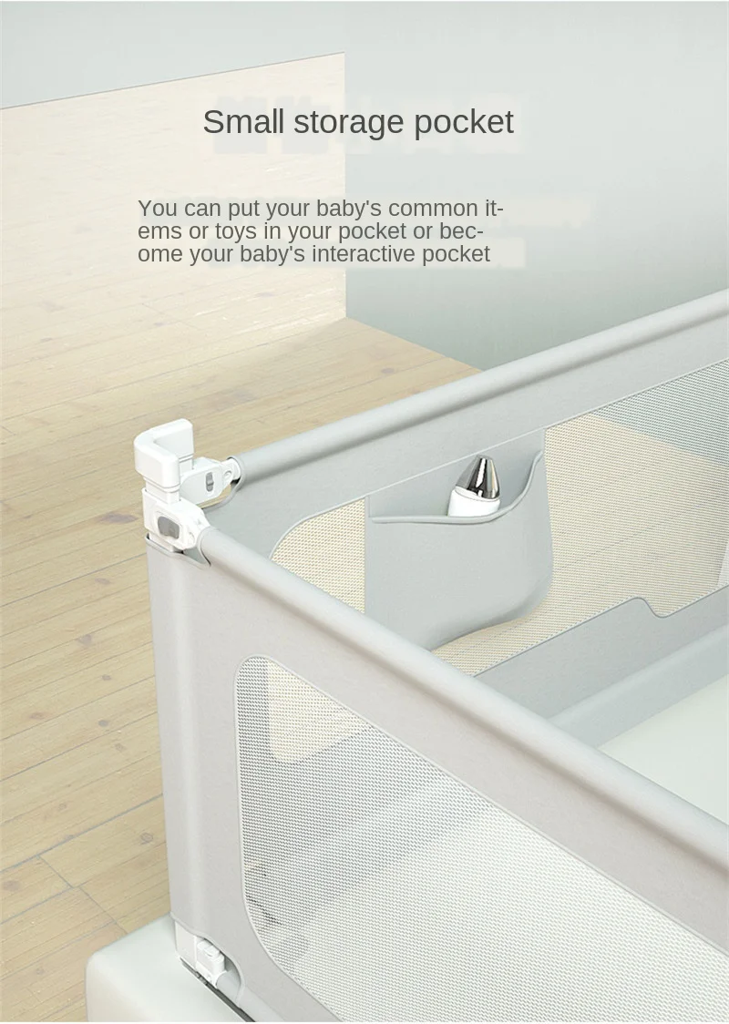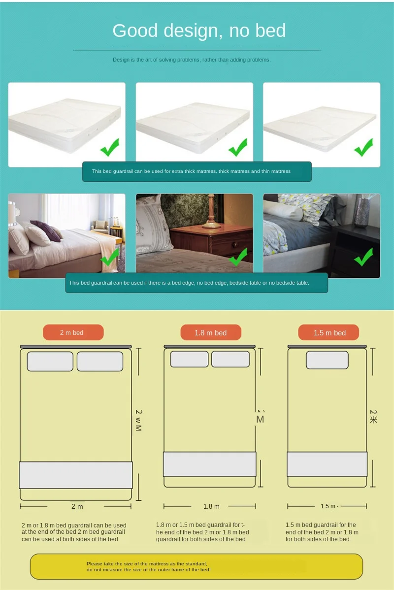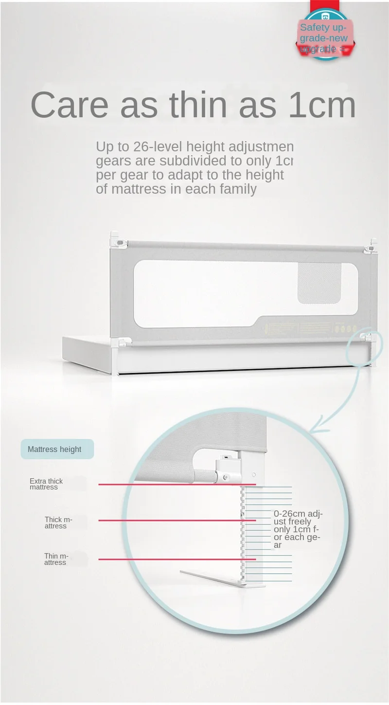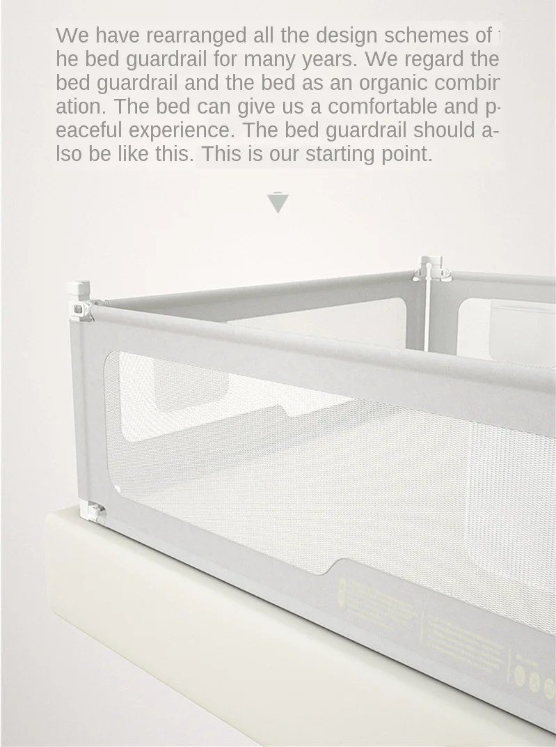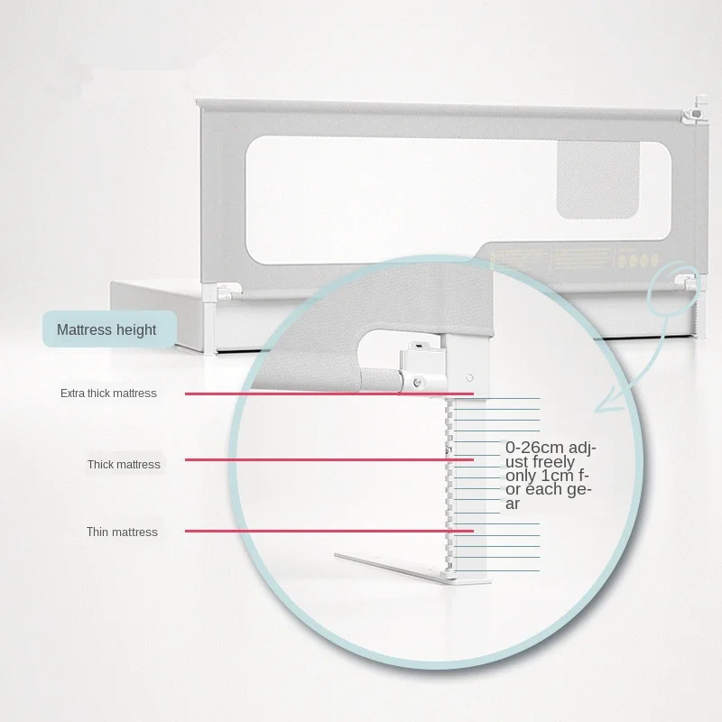 Protection height: 68cm, length: 150cm, 180cm, 200cm,220cm, suitable for mattress thickness adjustment of 4 files, packaging is only applicable to one side, can be purchased in combination. Vertical lifting, more space saving, prevent overturning, full tempering design, more stable and durable, high quality peach skin fabric, mesh material, soft, durable, no fluorescent agent, 0 formaldehyde, safe and healthy. To ensure the safety of your child, we use high quality mesh material that is soft and durable so it does not rupture and ventilate. The panel does not allow clearance from the mattress. Package is only available on one side. If your mattress is heavy enough, you can fix the bed rail. You don't need to install it extra. The panel does not allow any gaps with the mattress.