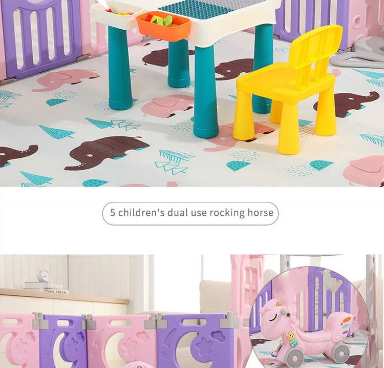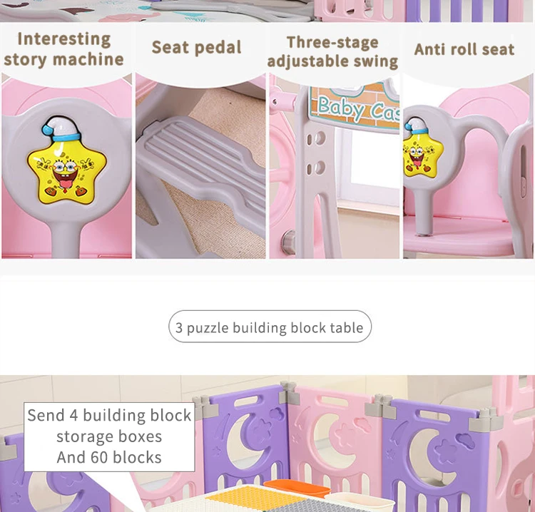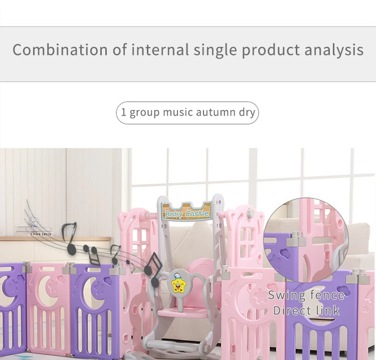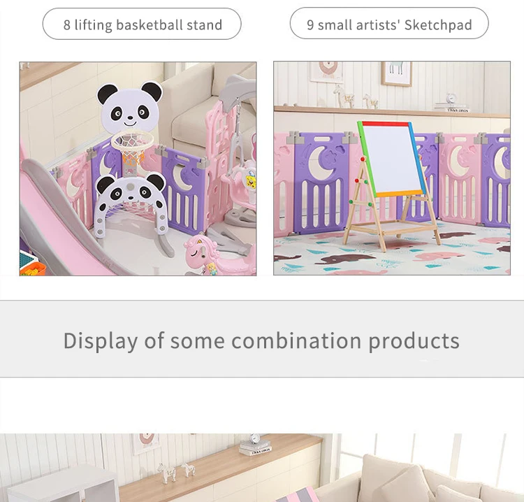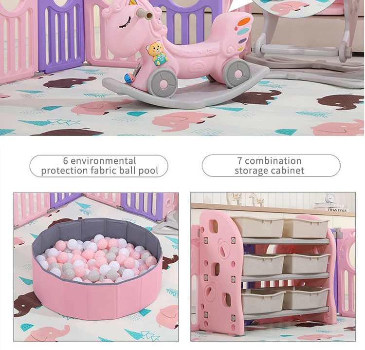 Материал: экологически чистый полиэтилен, безвреден для вашего ребенка. У нас есть такие предметы: игровой забор, коврик для ползания, горка, баскетбольная подставка, качели, корзина для хранения, доска для рисования, бассейн с мячом, палатка, игрушечный стол и стул, лошадка-качалка, качели и так далее. Вы можете выбрать комбинацию в соответствии с вашими потребностями. Пожалуйста, свяжитесь с нами, если у вас возникнут вопросы. Полезные советы: в комплект не входят морские мячи, футбол, баскетбол и т. д.