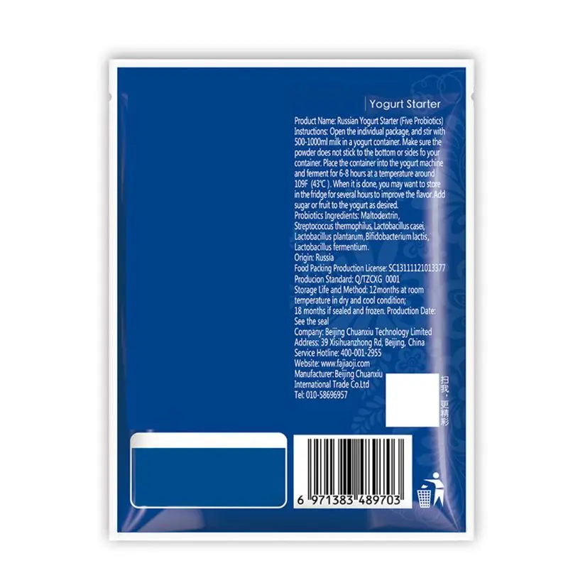 1 пакетик (10 г) теплофильного пробиотического йогурта культуры стартера, используйте один пакет для 1-5 литров молока.