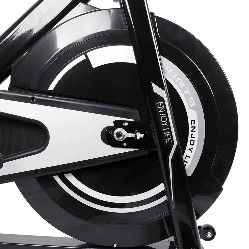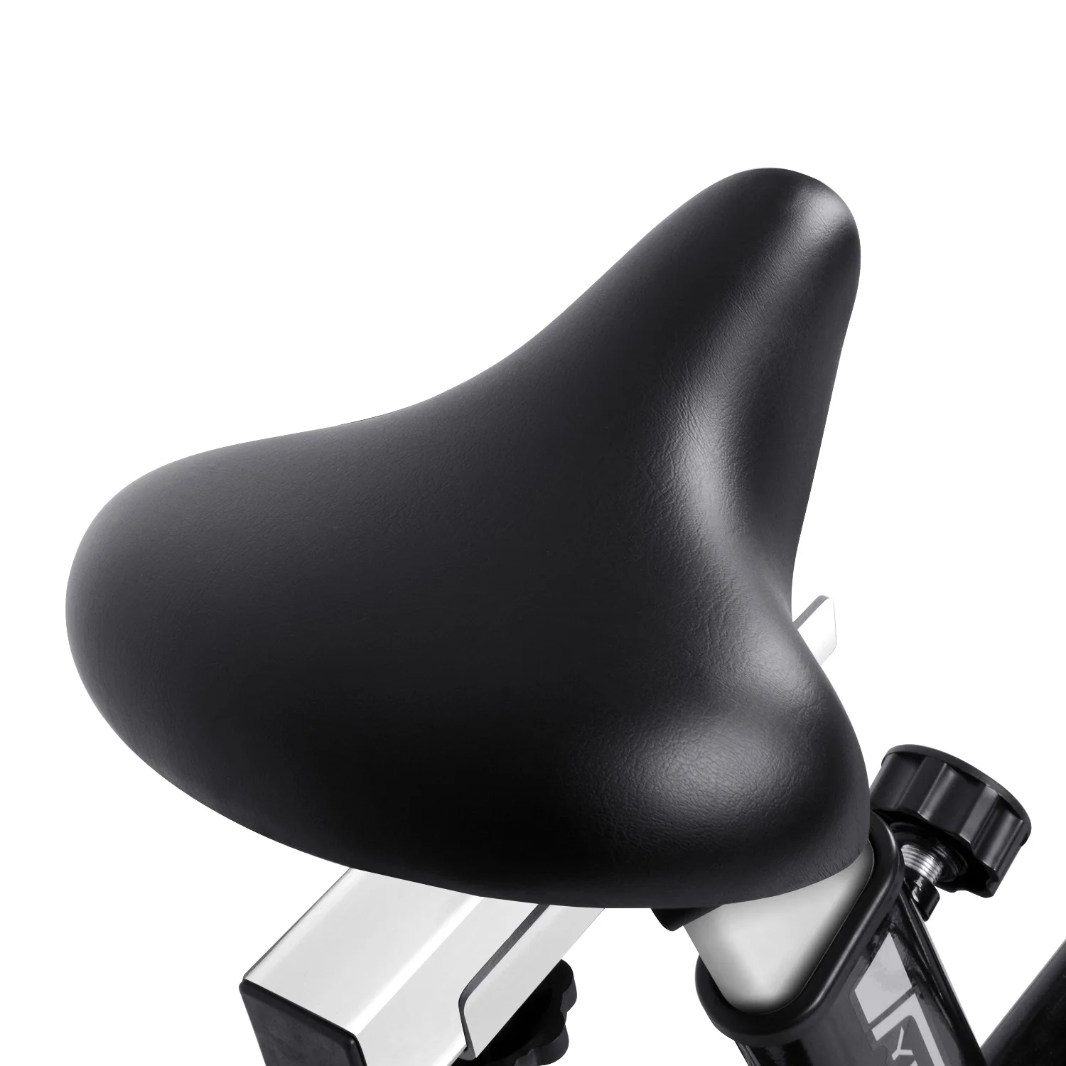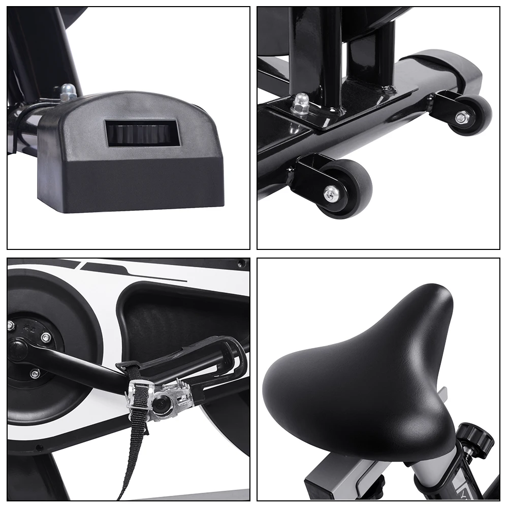 -Материал: ПУ седло, педали из алюминиевого сплава, стальная рама -Дисплей: расстояние, скорость, время, калории и одометр -Вес спиннинга велосипеда: 31 кг -Вес: 330 фунтов (150 кг) -Вес: 62 фунта (28 кг) -Размеры: 46x42x21 дюймов -Вес маховика: 8 кг