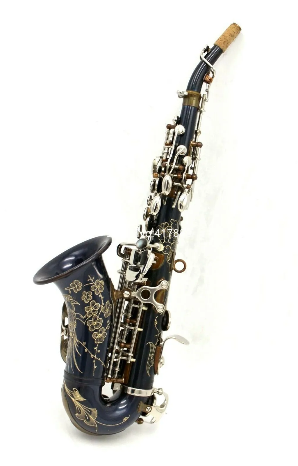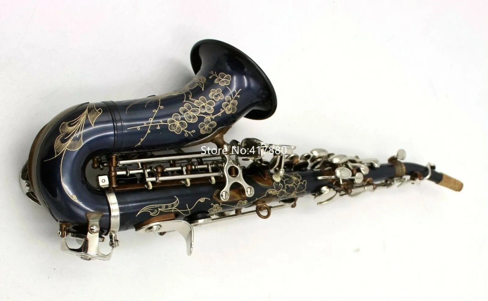 Профессиональный изогнутый саксофон сопрано B плоский Небесно-Голубой Корпус серебряный ключ музыкальный инструмент с чехлом Бесплатная доставка