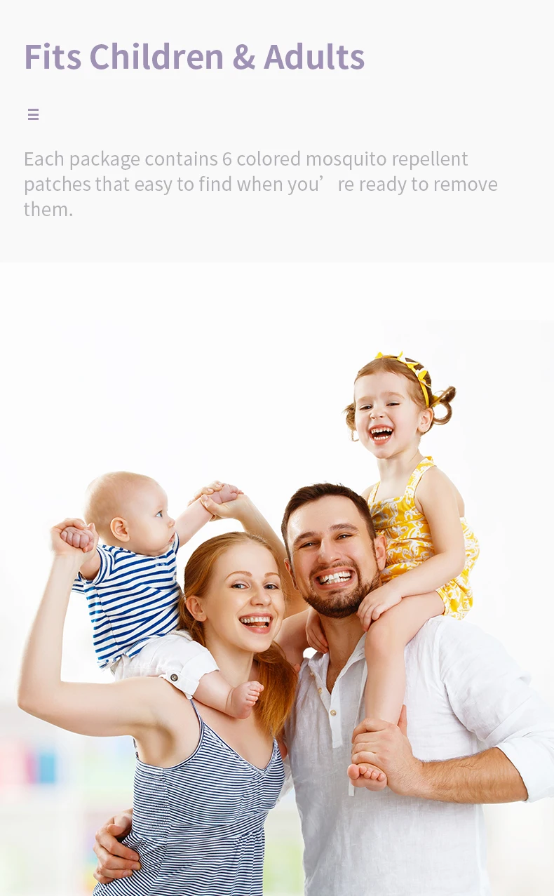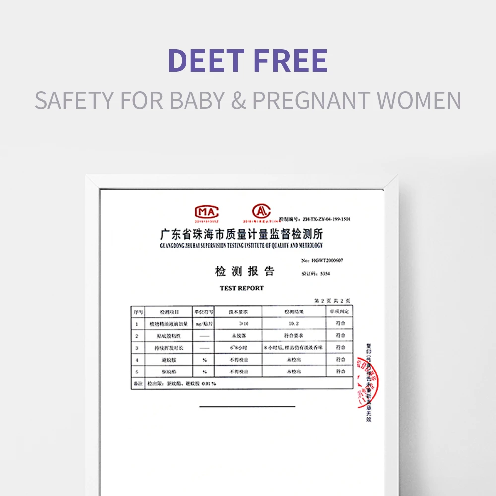 Изготовлен из без ДЭТА нетоксичных ингредиентов, лучше всего подходит как для взрослых, так и для детей, так как они обеспечивают защиту владельца до 24 часов. С большим удобством использования, он идеально подходит для сна, рыбалки, купания на солнце, кемпинга и других видов деятельности. Безопасен для вашего здоровья в любой день, натуральный наклейка от комаров-это must-have.