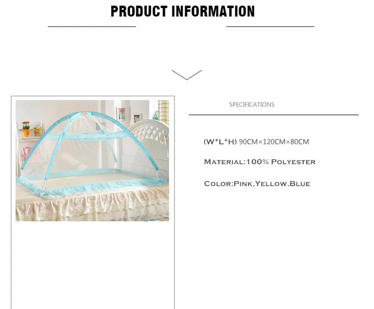 Переносная сетка для младенцев от насекомых, москитная сетка, детская колыбель, навес, кровать, москитные сетки, летняя детская кровать, кроватка, Москитная палатка Технические характеристики: Материал: Высококачественная Сетка из полиэстера Размер: около 90*120*80 см (ошибка 1-3 см) Подходящий возраст: От 0 до 2 лет Цвет: синий, розовый, желтый Пакет включает в себя: 1 x детские чистая Особенность: без застежки-молнии