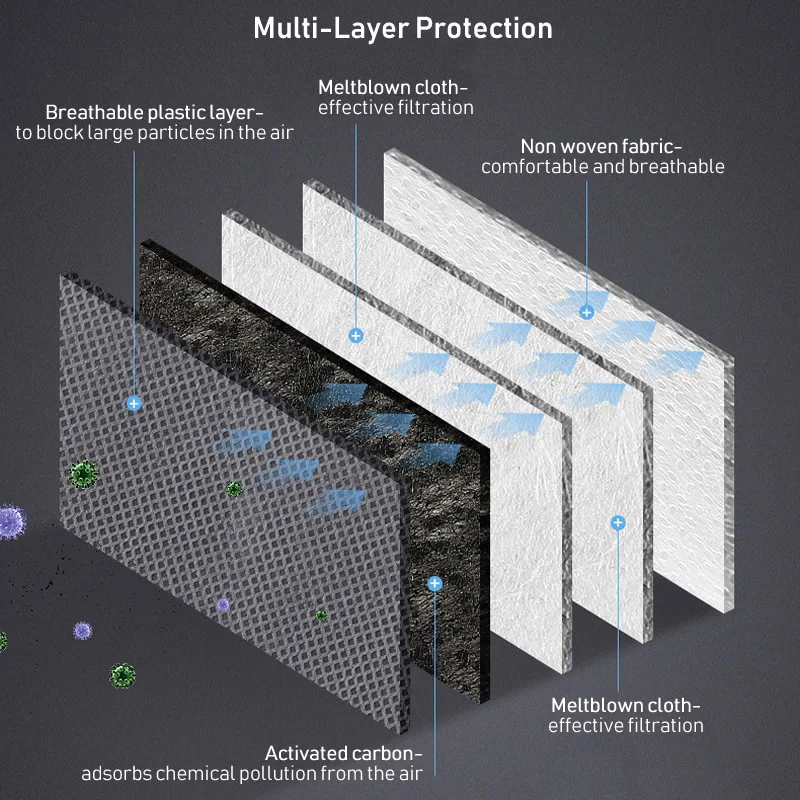 Внутренняя частьПодкладка: Нетканая ткань + расплавленная ткань + активированный уголь