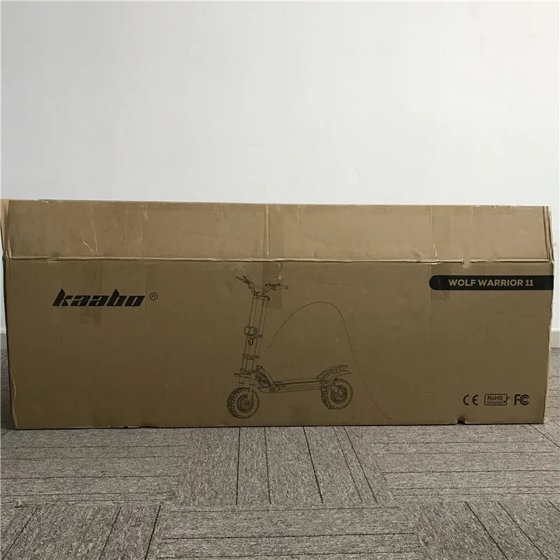 Спецификация Kickscooter Kaabo Wolf Warrior II: Модель: Wolf Warrior II Конфигурация: аккумулятор 60v 35ah LG/аккумулятор 60v 26ah Тип батареи: LG/китайский бренд Максимальный диапазон: 150 км (Эко-режим) 90 км (режим двойного привода) Максимальная скорость: 80 км/ч Углы скалолазания: < 45 градусов/ <40 градусов Время зарядки с одним зарядным устройством: 17 + Мощность двигателя: двойной бесщеточный двигатель 1200 Вт X2 Материал оправы: авиационный алюминий T6082 + цельная ковка Тормоз: передний и задний гидравлический дисковый тормоз + ABS/передний и задний гидравлический дисковый тормоз + EABS Амортизатор: передний гидравлический амортизатор и задний пружинный амортизатор Шины: 11 дюймов внедорожные шины/уличные шины CST шины Вес брутто: 52 кг Размер посылка: 1610x330x500мм