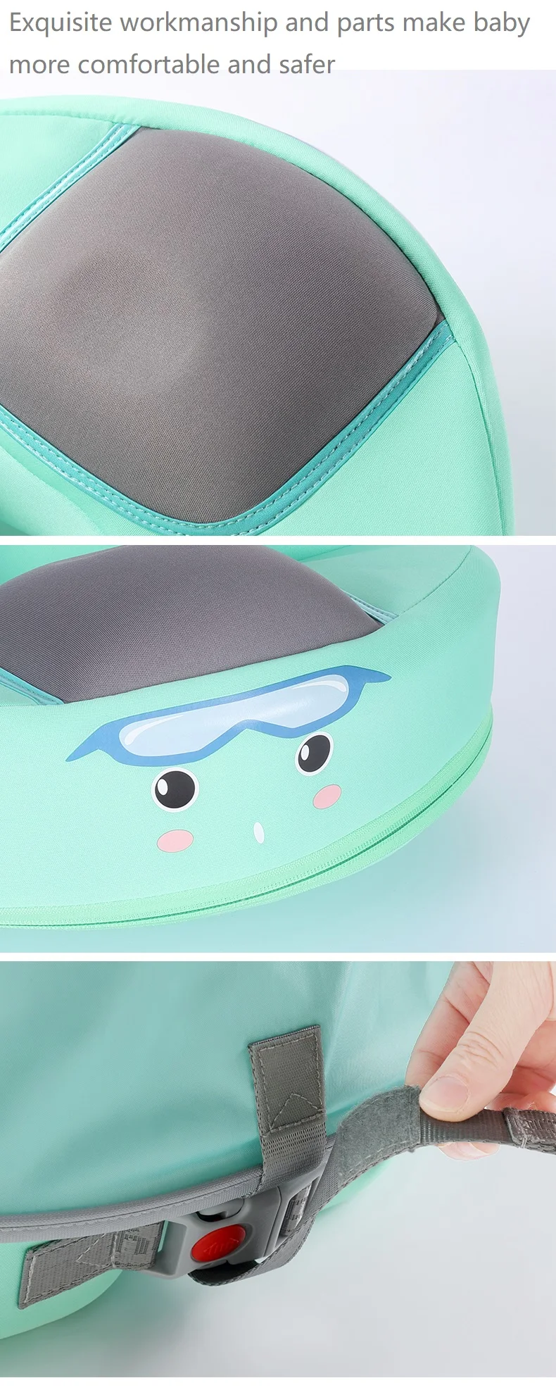 【Модернизированная пряжка безопасности Upgraded модернизированная пряжка безопасности обеспечивает 5 опорных понтов и идеальный угол 40 °, чтобы держать баланс для aviod ребенка перевернуть и отвалиться. Модернизировано в 2 плавательных способа, которые являются обратным и нагрудным ударом с различными способами пряжки. Задний ход подходит для От 3 до 6 месяцев ребенка, нагрудный ход подходит для ребенка 3-24 месяцев.