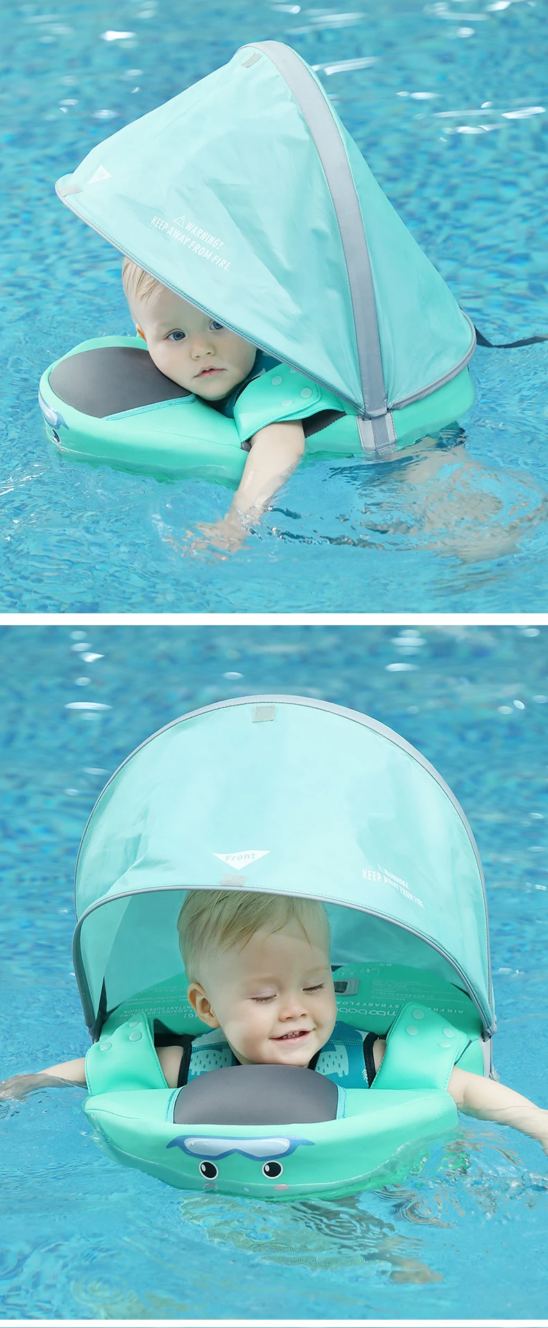 【 3-я обновленная версия] детский плавательный поплавок поставляется со съемным навесом. Съемный сборный UV-PROOF навес от солнца покрытый солнцезащитным покрытием UPF 50 + защищает кожу ребенка от солнца. Пусть ребенок будет наслаждаться плаванием летом.