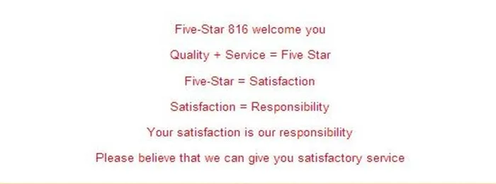Наиболее уважаемые клиенты: Наша цель-управление целостностью. Ваше удовлетворение-наша самая большая движущая сила. Ваше удовлетворение-это наше неустанное стремление. Мы думаем о том, как сделать вас более удовлетворенными каждый день. Спасибо за ваше доверие и поддержку, я желаю вам счастья и счастья каждый день.