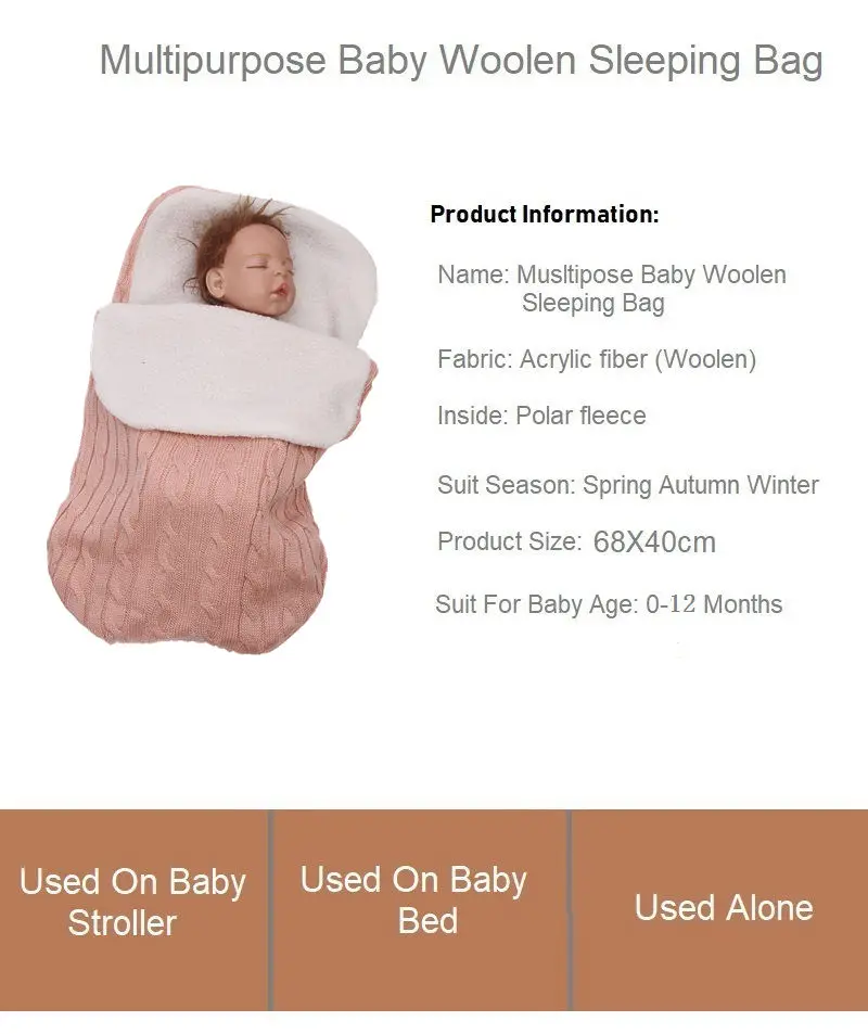 Описание: Спальный мешок для новорожденных, вязаный крючком зимний спальный мешок для коляски Весь спальный мешок вокруг покрытия, оберните все тело ребенка, а также ступню в качестве муфты для ног Изготовлено из высококачественной вязаной шерсти, с флисовой подкладкой, более толстый, теплый, мягкий и удобный, чтобы держать вашего ребенка в тепле. Застежка-молния отлично подходит для удобного открытия и закрытия Используется в качестве пеленки, спального мешка, одеяла для коляски или детской кроватки и т. д. Идеально подходит для прогулок Только спальный мешок Материал: акриловое волокно + флис Размер: 68 см * 38 см (25,6*14,9 дюйма)
