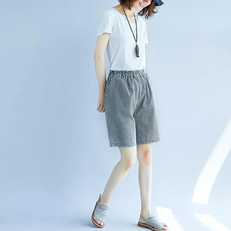 Летние женские пижамы, 100% хлопковые шорты, мужские и женские клетчатые брюки, свободные повседневные штаны для сна, пижамы, штаны, Пижама