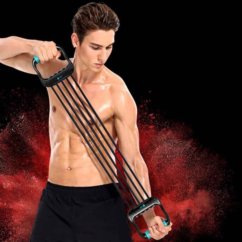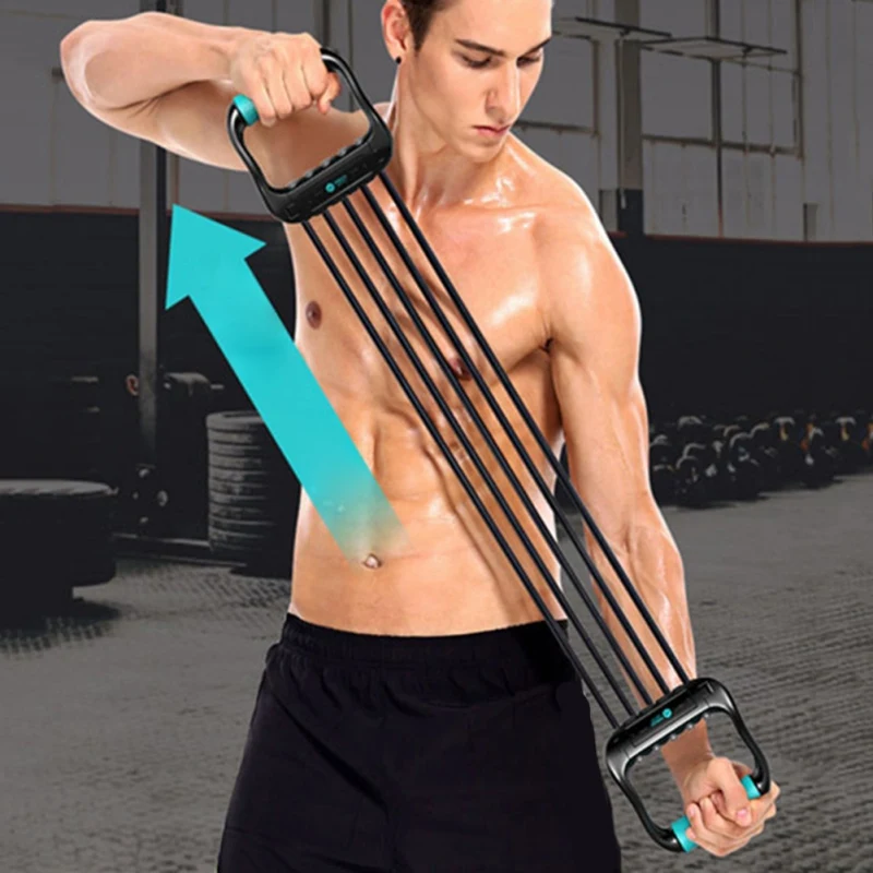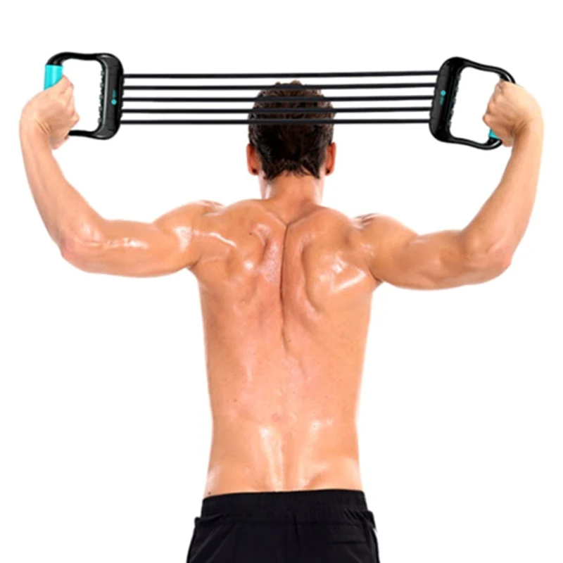 2,5 толстые и экологически чистые мягкие латексные трубки обеспечивают его длительное натяжение. Конструкция верхней полосы затрудняет изгиб. Мягкая резиновая ручка защищает руки пользователя и предотвращает скольжение рук во время движений груди.
