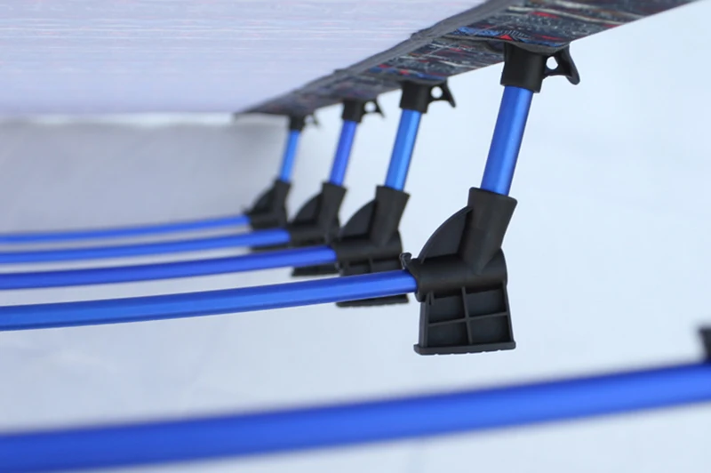 The bracket is composed of 5 sets of legs and 2 cross beams, and the material is 7075 aluminum alloy. The diameter of the support beam is 17.7mm, and the diameter of the support leg is 12.7mm.The bed cloth is made of reinforced 600D lattice nylon fabric, durable and tear resistant.