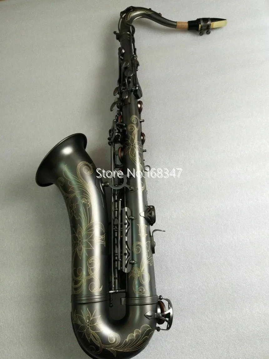 Хит продаж, брендовый японский саксофон SUZUKI Bb тенор, черный никель, золотая поверхность, профессиональный музыкальный инструмент с креплением
