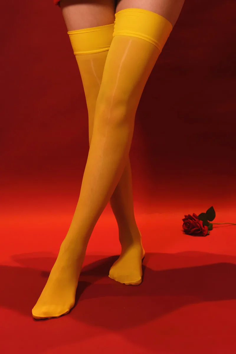 8D, винтажные сексуальные высокие чулки, глянцевые, блестящие, масляные чулки для женщин, прозрачные, ребристые, сексуальное нижнее белье, яркие цвета, F10