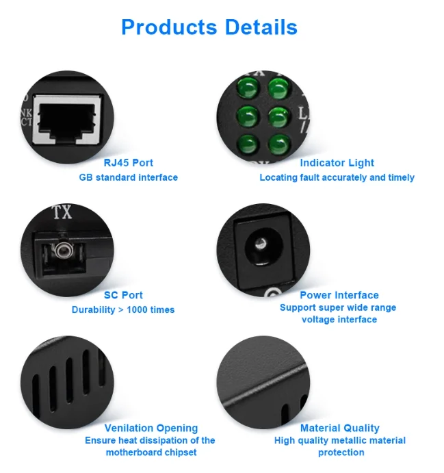 Гигабитный волоконный медиаконвертер с 10/100/1000 м одномодовым одиночным оптоволоконным преобразователем-это конверсионное оборудование оптико-электронных сигналов Ethernet между 10/100/1000 м UTP интерфейсом (TX) И волоконный интерфейс 1000 м (FX). Традиционный Ethernet 10/100/1000 М может быть расширен на расстояние 100 км через одно оптоволоконное соединение. Производительность и качество продукции превосходны из-за принятия последней IC из Тайваня. Он должен быть использован в парах, потому что передаваемый оптический отличается от получаемого оптического в длине волны. Светодиодный индикатор 6 групп может полностью контролировать условия работы преобразователей. Конечным пользователям легко наблюдать за условиями сети. Продукт серии по разумной цене специально разработан для конечных пользователей сети. Есть также много других преимуществ, таких как защита изоляции, Хорошая безопасность данных, стабильность работы и простота обслуживания.