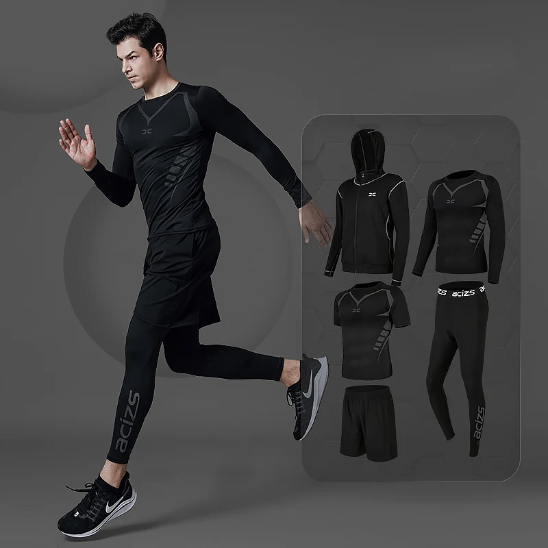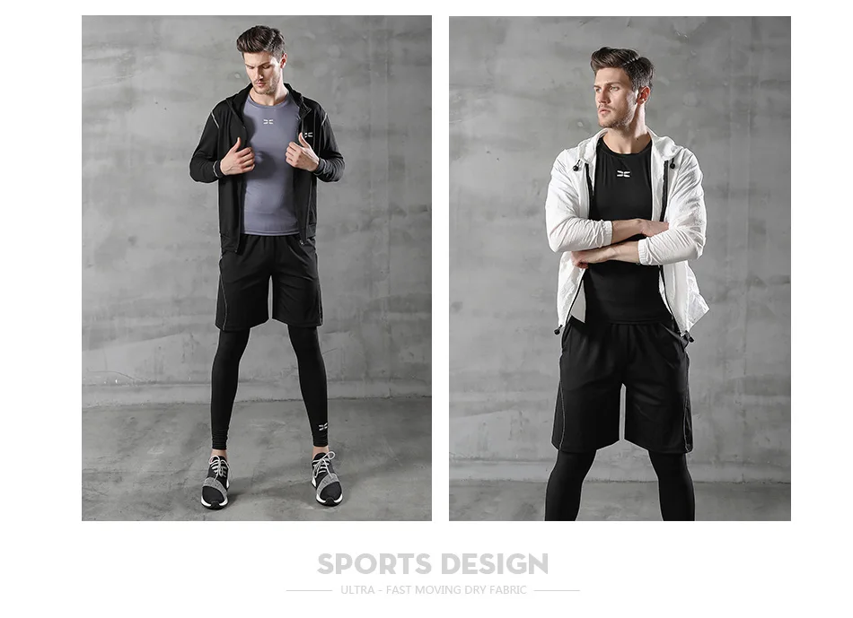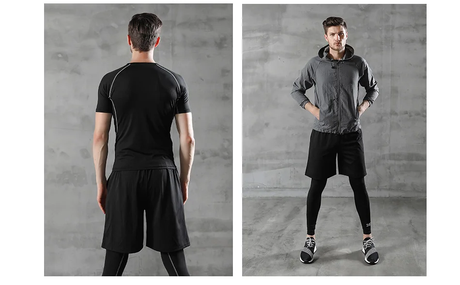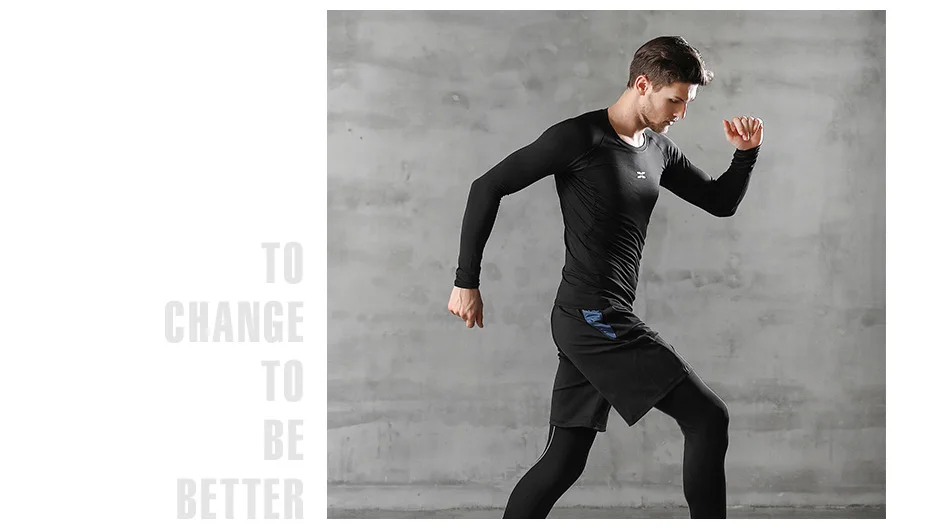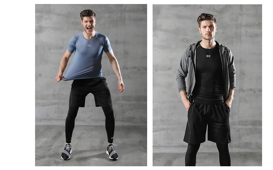 Мужской спортивный костюм сжатия костюм для мужчин спортивная одежда спортивный костюм термобелье костюм Рашгард для mma мужские длинные штаны леггинсы Шорты