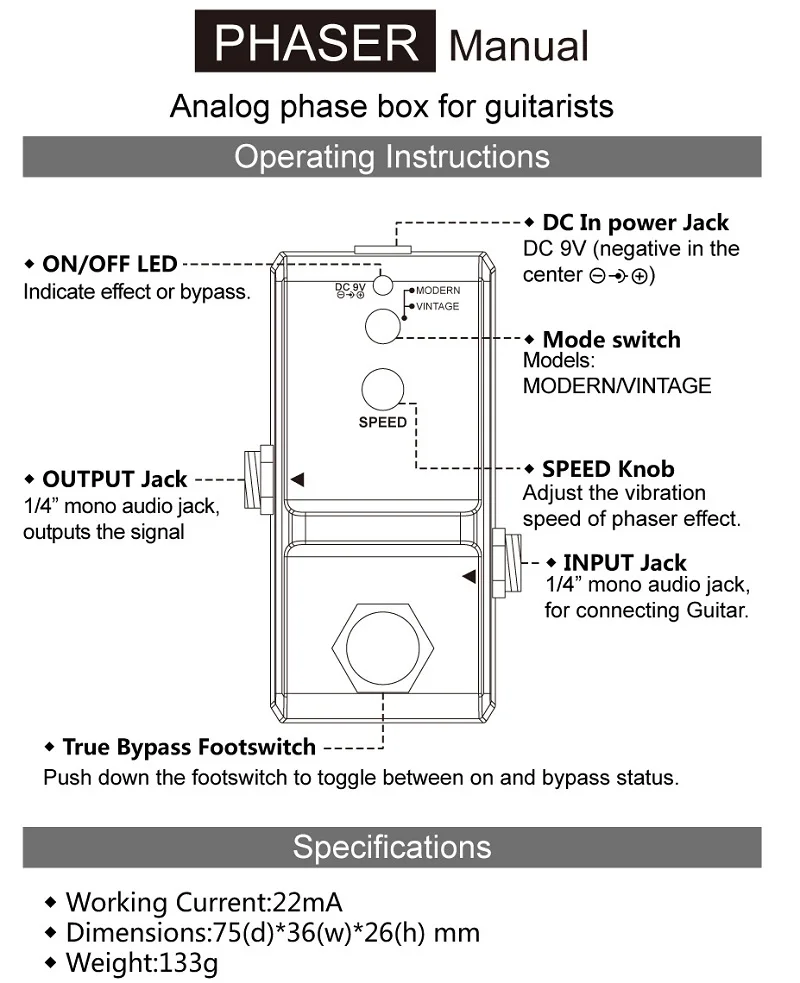 Винтажный режим возвращает классический, теплый фазовый сдвиг с 80-х, а современный режим расширяет диапазон тонов для более широкого звука.