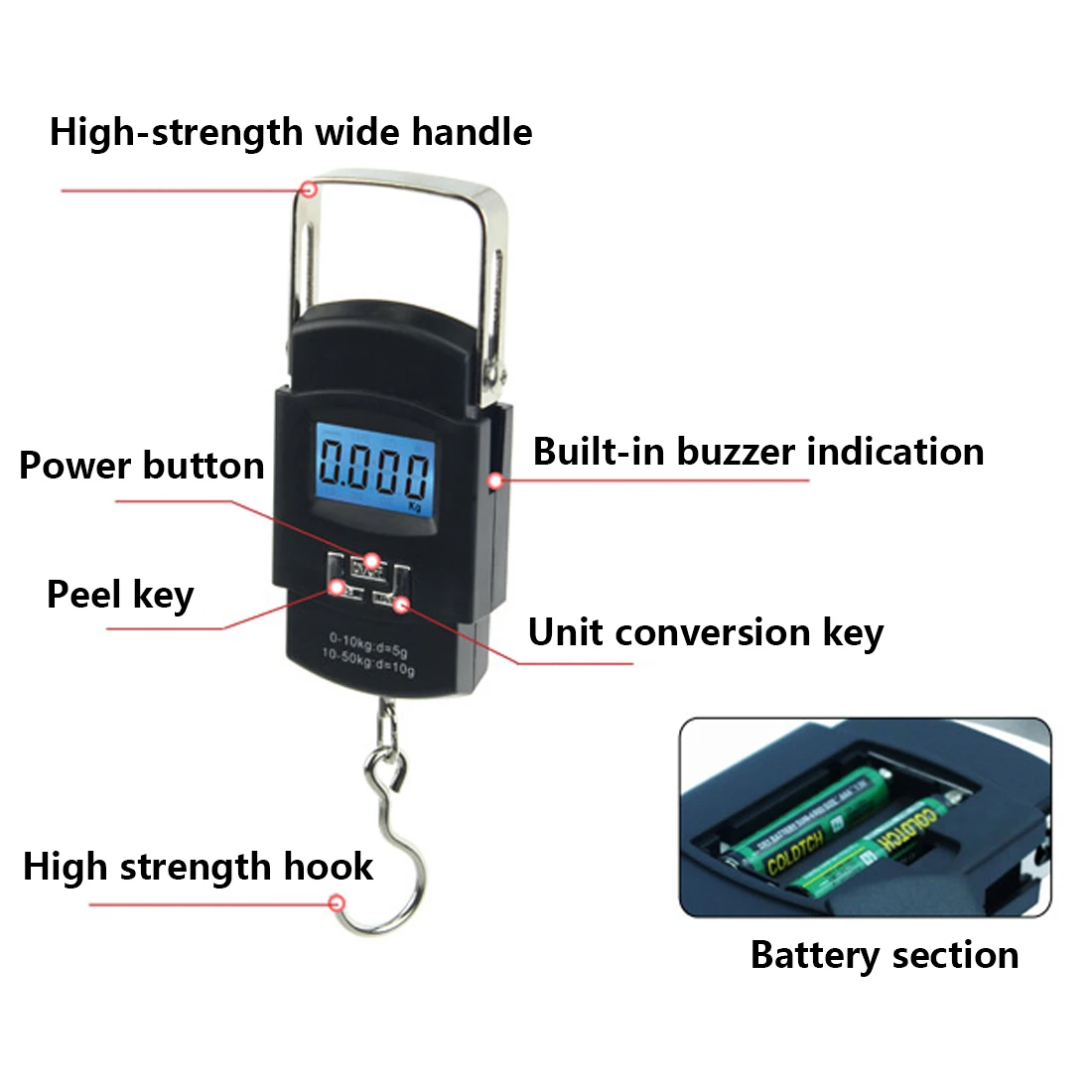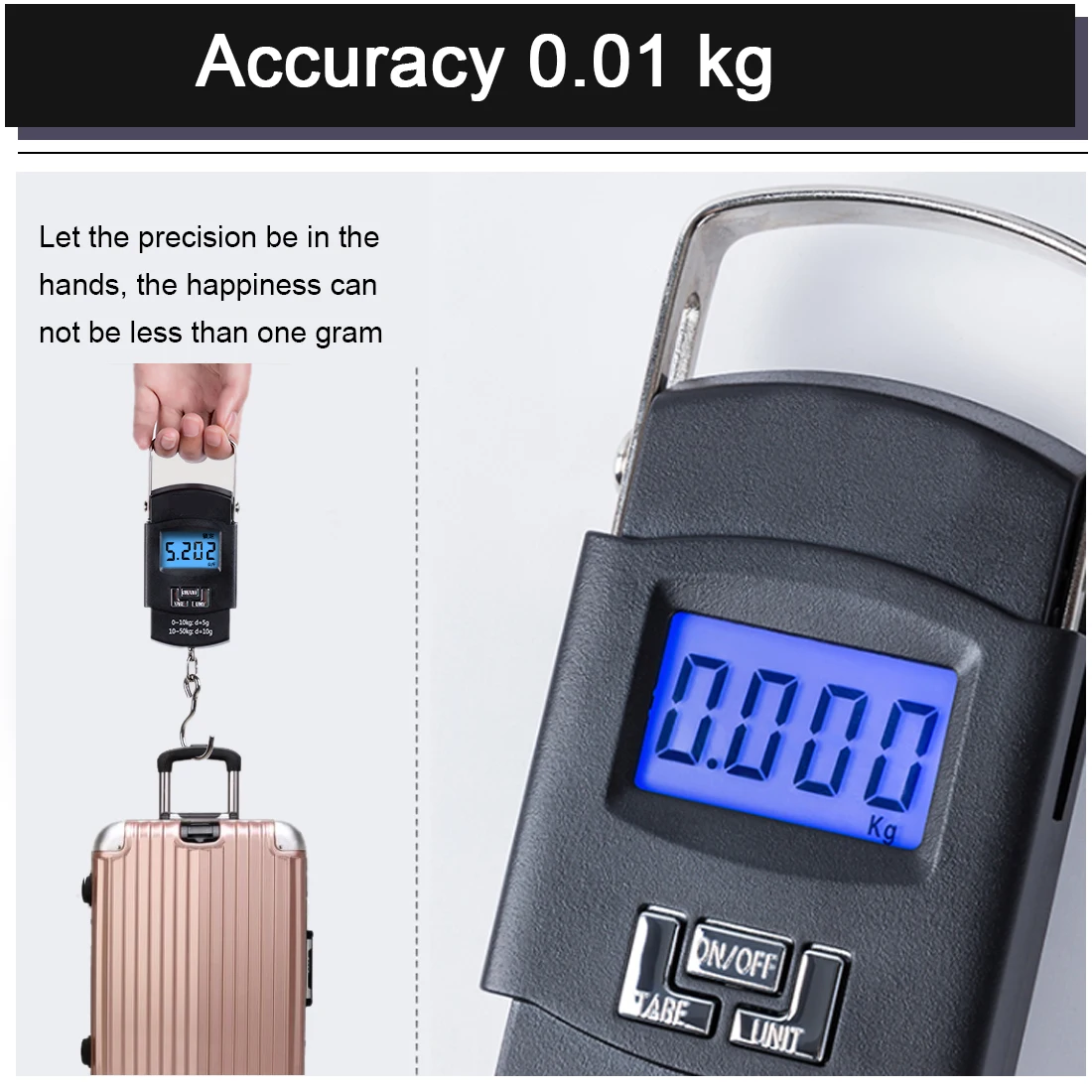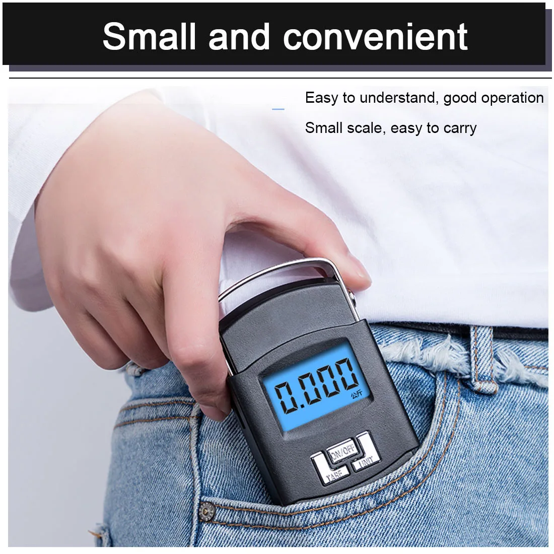 1.Ultra-compact design & light weight, and easy to carry. 2.50kg capacity with 10g readability. 3.3 button: ON/OFF, Tear and UNIT 4.LCD screen display with blue background light. 5.Easy to carry it in a pocket or handbag for weighting on travel.