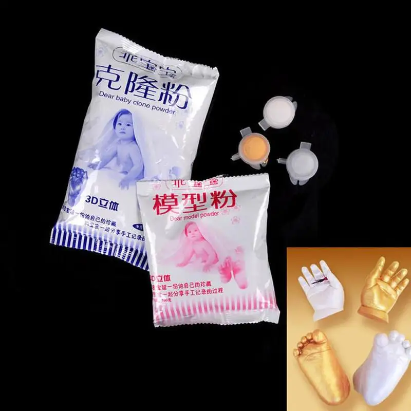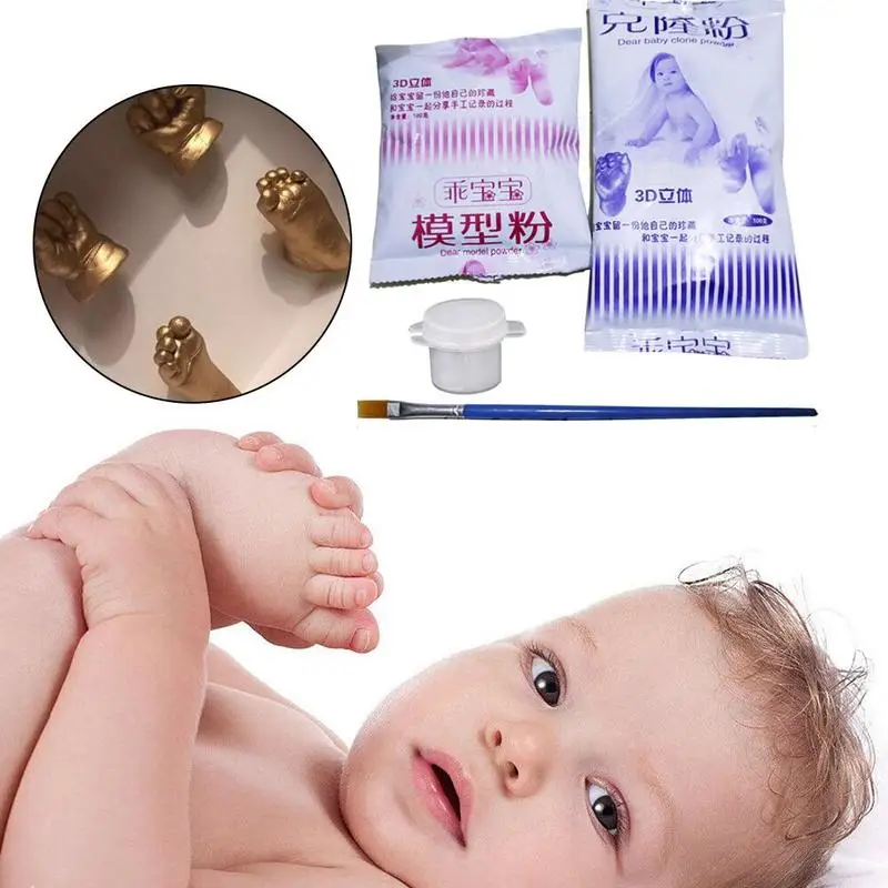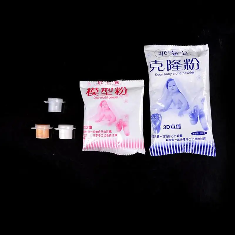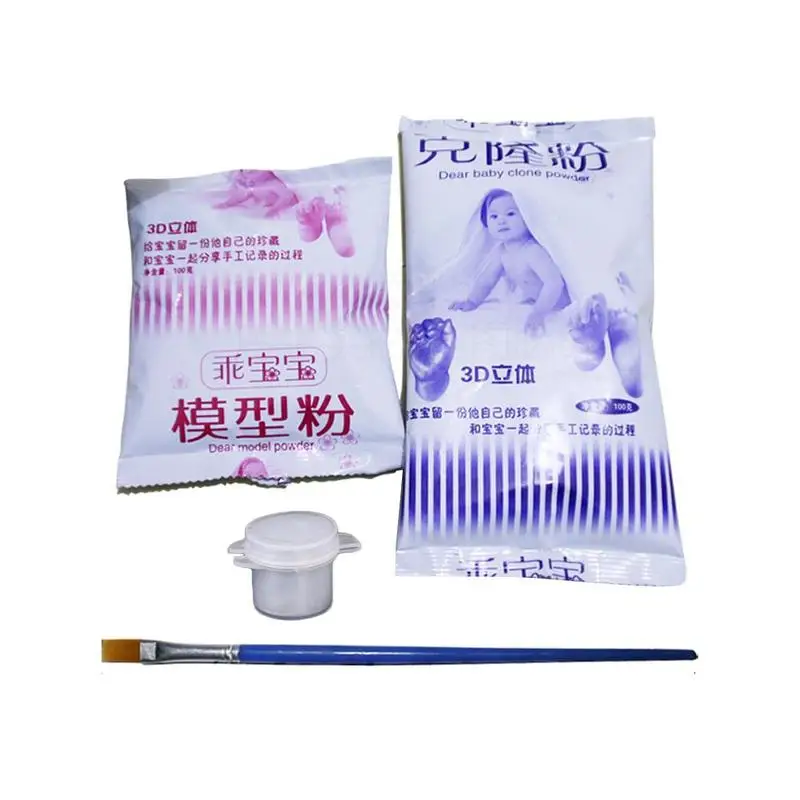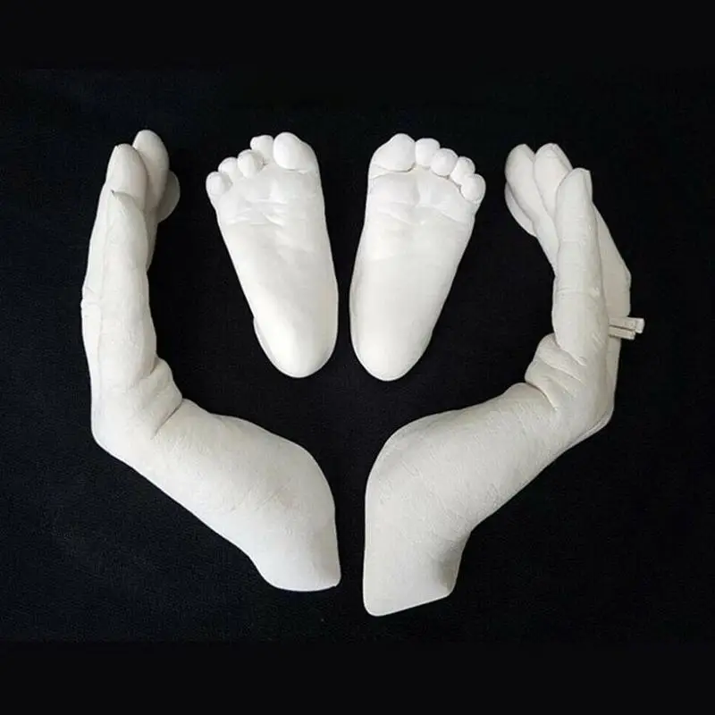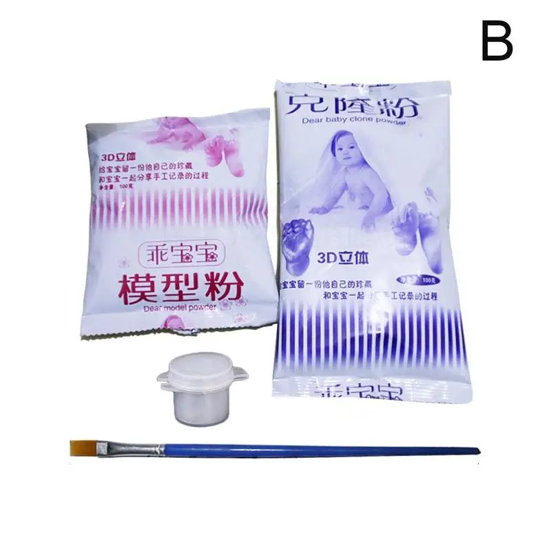 Порошок для литья смешивается с водой. После установки формы около 75 секунд нога или рука ребенка вставляется в литой контейнер. Откачивайте ноги ребенка (или руки) из формовочного материала.