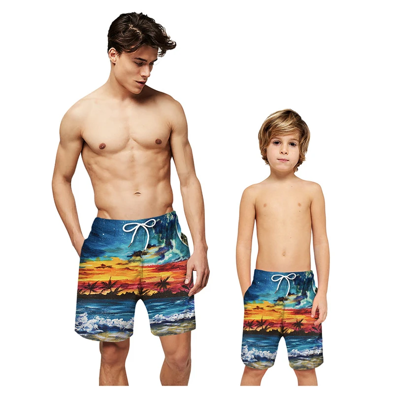Летние шорты для маленьких мальчиков от 7 до 14 лет, Детские быстросохнущие купальные шорты с 3D принтом, Пляжные штаны с эластичным поясом, A40
