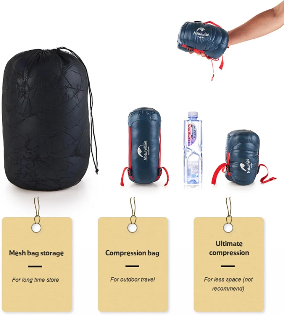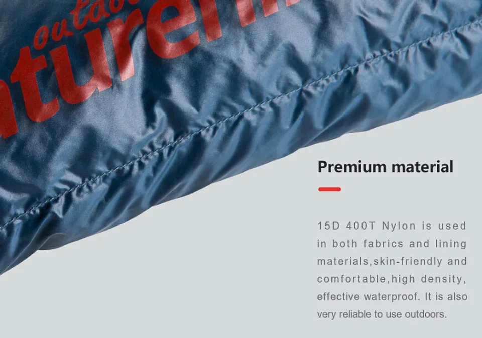 Бренд: Naturehike Наименование: спальный мешок для кемпинга Naturehike Ткань: нейлон 15D 400T Набивка: 280 г, 400 г 95% белый гусиный пух Подкладка: нейлон 15D 400T Размер: 190*72 см/200*80 см Температура: 2 ℃- 8 ℃ (190*75 см)/ -5 ℃- 0 ℃ (200*80 см) Размер упаковки: 12*26 см, 16*35 см Вес: 570 г, 790 г