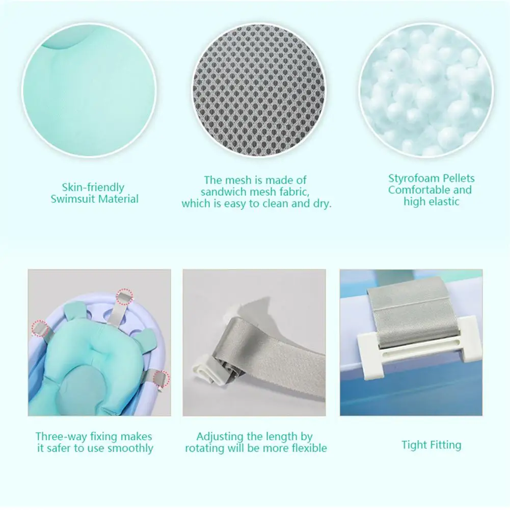 1. Коврик для ванной: коврик для купания новорожденных поставляется с бионическим дизайном, и он поставляется с удобной защитой позвоночника, что дает ребенку более чувство безопасности; Несколько перегородок удобны и безопасны.2. Премиум-Материал: коврик поставляется с сетчатой структурой D + пенопластовым наполнителем, и он изготовлен из ткани для купальников. Подкладка дышащая и быстросохнущая, легко устанавливается, подходит для большинства ванн.
