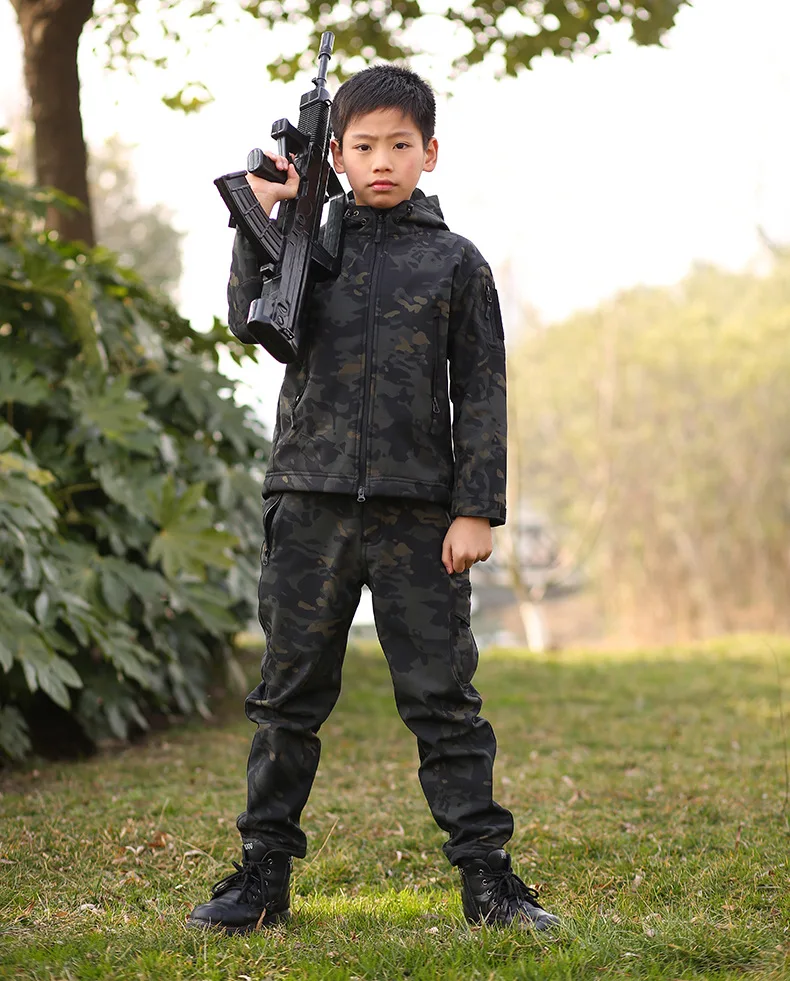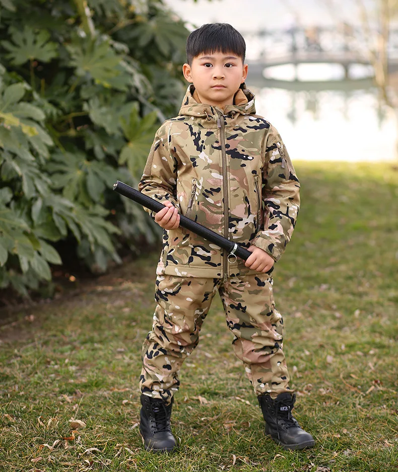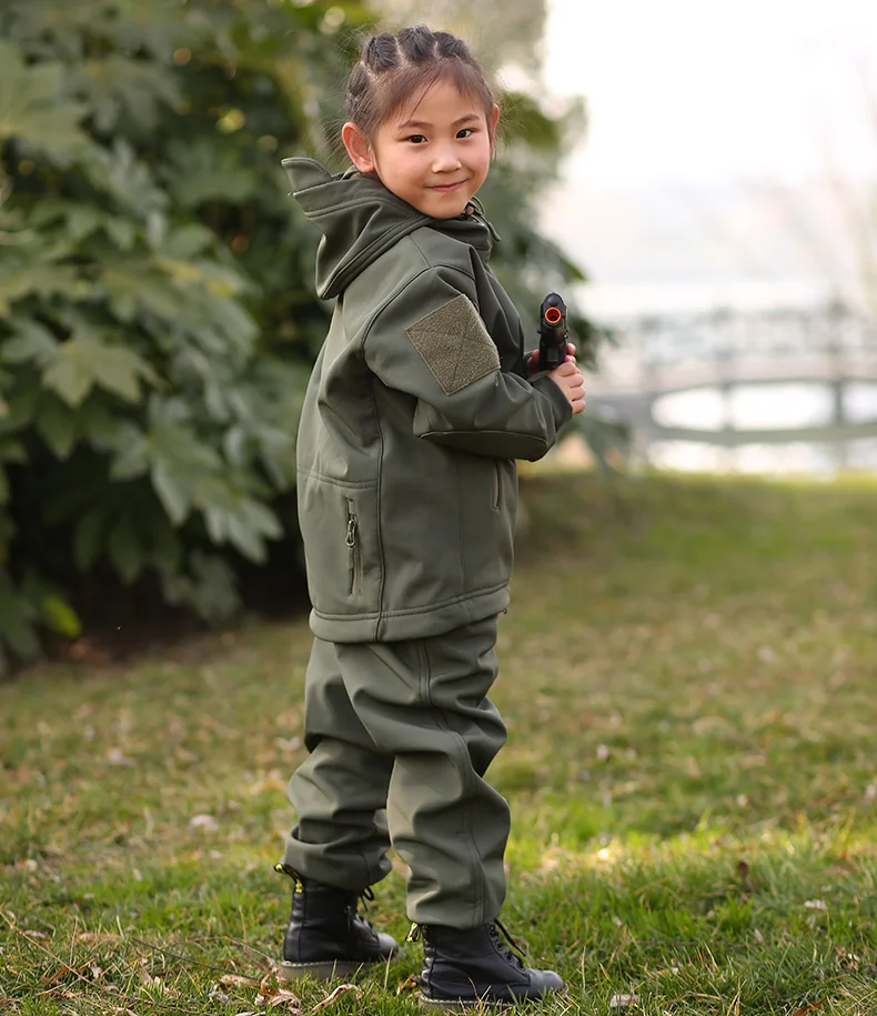 TAD Tactical Shark Skin, Детская флисовая куртка, штаны, костюм, Детские камуфляжные костюмы для кемпинга, походов, верхняя одежда, водонепроницаемый тренировочный комплект