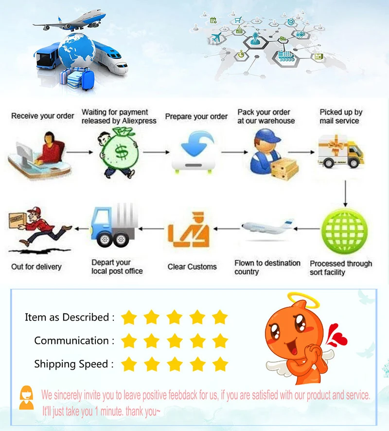 Для оптовых заказов, пожалуйста, свяжитесь с клиентской службой напрямую! Условия оплаты: 1. Мы принимаем Alipay, West Union, TT. Все основные кредитные карты принимаются через безопасную оплату. 2. Оплата должна быть произведена в течение 3 дней с момента заказа. Доставка: 1. Доставка по всему миру. (За исключением некоторых стран и армейской почтовой службы/почтовых отделений флота). 2. Заказы обрабатываются своевременно после подтверждения оплаты. 3. Мы отправляем только по подтвержденным адресам заказа. Адрес Вашего заказа должен совпадать с адресом доставки. 4. Изображения не являются фактическим товаром и только для справки. 5. Время доставки предоставляется перевозчиком и не включает выходные и праздничные дни. Сроки доставки могут меняться, особенно во время курортного сезона. 6. Если вы не получили ваш груз в течение 45 дней с момента оплаты, пожалуйста, свяжитесь с нами. Мы отследим отправку и свяжемся с вами как можно скорее. Наша цель – удовлетворение клиентов! 7. Из-за наличия на складе и разницы во времени, мы выберем для быстрой доставки ваш товар с нашего первого доступного склада. Возврат: ≥услуга «бесплатный возврат» для покупателей из Испании, Франции, России, США, Канады, Великобритании, Германии, Австралии. 1. Для других покупателей из других стран, у вас есть 7 дней, чтобы связаться с нами и 30 дней, чтобы вернуть его с даты его получения. Если этот товар находится у вас более 7 дней, он считается использованным, и мы не выдадим вам возврат или замену. Стоимость доставки покрывается как продавцом, так и покупателем пополам. 2. Все возвращенные товары должны быть в оригинальной упаковке, и вы должны предоставить нам номер отслеживания доставки, конкретную причину возврата. 3. Мы вернем вам полную выигравшую цену, при получении товара в его первоначальном состоянии и упаковке со всеми компонентами и аксессуарами в комплекте, после того как покупатель и продавец отменят сделку с aliexpress. Или вы можете выбрать замену. Гарантия: 1. 12 месяцев ограниченная гарантия производителя на дефектные изделия (за исключением предметов, поврежденных и/или неправильно использованных после получения). Аксессуары поставляются с 3-месячной гарантией. 2. О дефектных товарах должно быть сообщено и возвращено в течение гарантийного срока (и в оригинальной упаковке, если это возможно). Вы должны сказать нам, что такое дефект и дать нам номер вашего заказа. Мы не ремонтируем и не заменяем товары с истекшей гарантией. 3. Вы согласны со всеми вышеуказанными правилами при заказе на aliexpress! Обратная связь: обратная связь очень важна для нас. Мы просим Вас немедленно связаться с нами, прежде чем вы дадите нам нейтральный или отрицательный отзыв, чтобы мы могли удовлетворительно решить ваши проблемы. Спасибо!