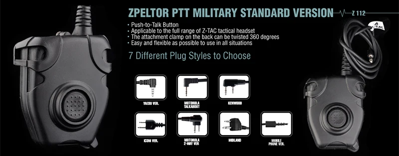 Z-TAC Tactical headphone headset zPELTOR PTT Push To Talk Z112 Headset Adapter 1 - 2 Pin Radio Airsoft military radio use